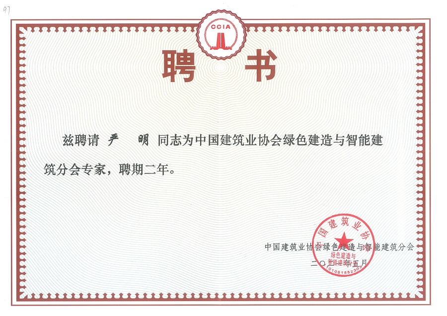 【喜报】缘达公司严明同志聘请为中国建筑业协会绿色建造与智能建筑分会专家