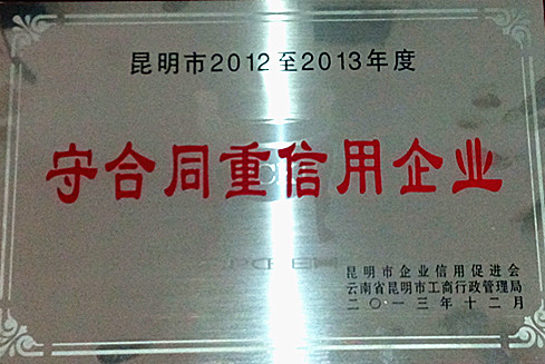 我单位连续5年被认定为昆明市 “守合同重信用”企业