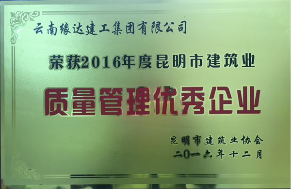 我单位荣获2016年度昆明市建筑业“质量管理优秀企业”称号