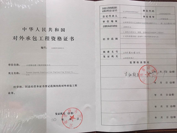 我公司取得中华人民共和国《对外承包工程资格证书》