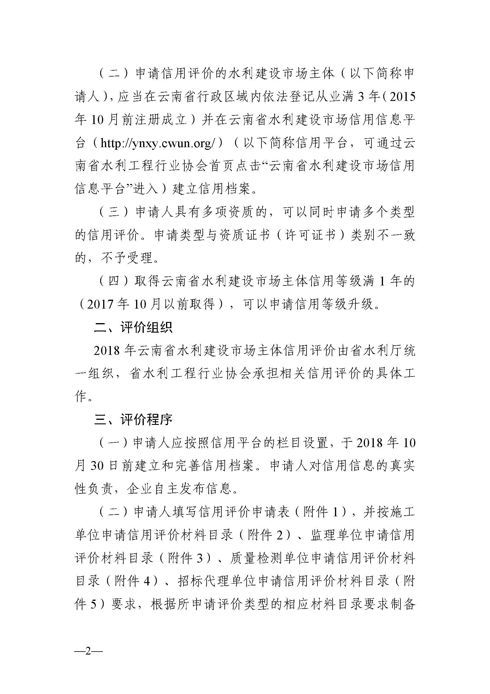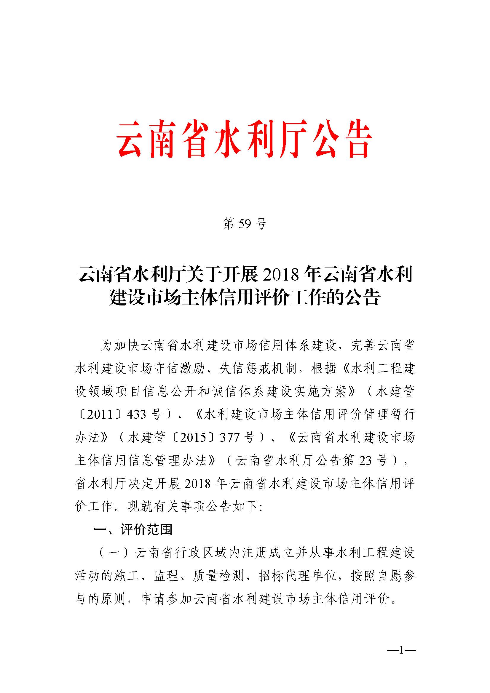 关于开展2018年云南省水利建设市场主体信用评价工作的公告