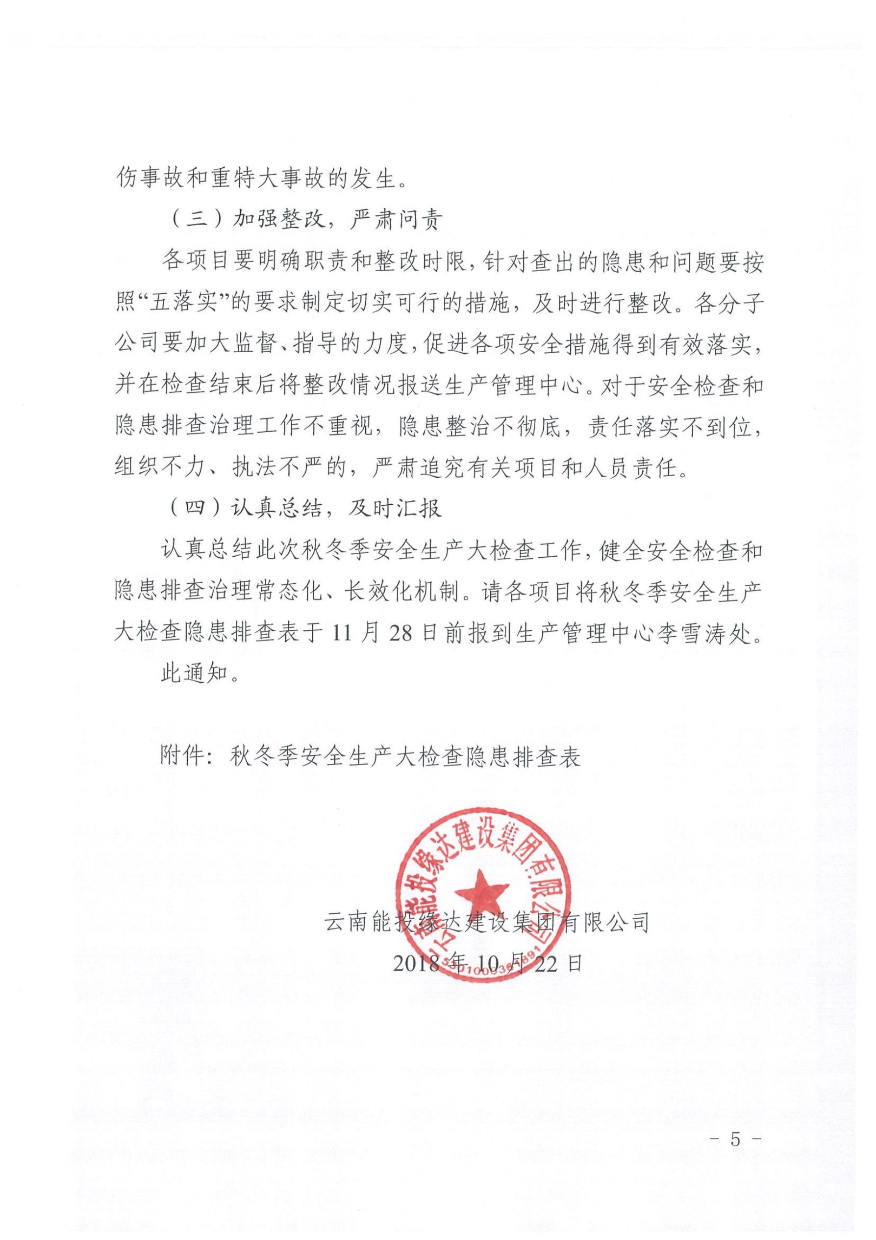 云南能投缘达建设集团有限公司关于开展2018年秋冬季安全生产大检查工作的通知